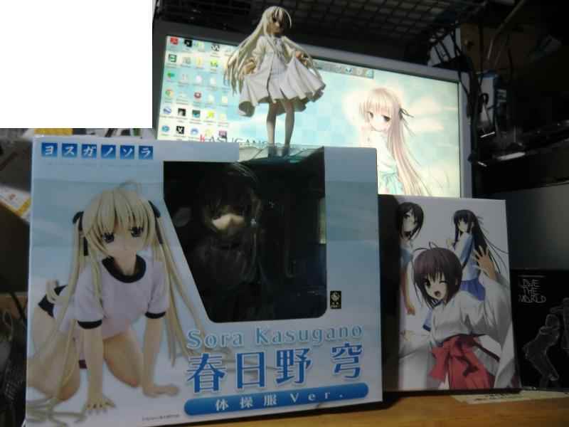 そして、 何とこの2品 ヨスガノのBD「春日野穹」 春日野穹「体操服Ver.」 これはまさしく激ヤバ物です。 同一キャラクターの複数体持ちはこの穹姫のみ。 何カ月分の給料をはたいたのでしょうか(笑) しかし、このチャンスを逃すと二度と手に入らないと察知しまして。。。(数日前と、予約した日で、すでに出品数が減ってた。)とにかく市場絶滅前に確保しておいてよかった。 地震など置きませぬように・・・ これで「俺の嫁」が一人増えた!(って、同一キャラじゃん) しっかし、このフィギュアでも、対象年齢は15歳以上ということで、俗に言う「規制品」ではないことが驚き。下着姿の穹姫が化粧箱に表示されていて、それだけでもエロいのに。