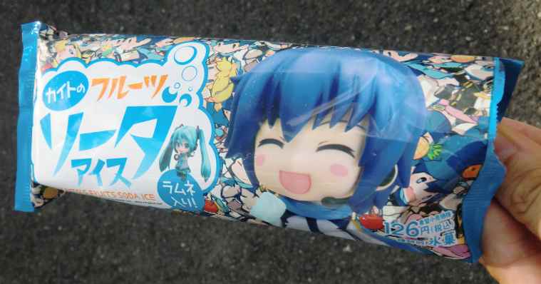 なんと、生MEIKOさんが京都駅ビルに! 聴きたいですが、平日なので私は無理ですが、ボカロファン必見かも。 これ。 ミクさんの顔を肉まんにするのは少々無理があるとしか言いようがない。。 この青の着色料が気になるところ。黄4黄5青1は確実に使ってるだろうな。 そして、健爽本舗のFASTEST CHARGEのポスターもうひとつの。 「ポスターが1000円で、買うと祖リンク5本ついてくる」という感覚ですね。 先に買っていた5本のうちまだ2本ほど残っているので、手元にいま7本あります。この夏に飲みきれるだろうか。 そして、自身久しぶりのアイス。 カイトになった気分で。さすがに夏なのでマフラーはしませんが。 さて、ミク5周年に向けて、1曲制作中ですが、動画が作れません。真っ黒のまま公開するのもそっけないので何とかしたいのですが、これでは8/31に間に合わなさそう。