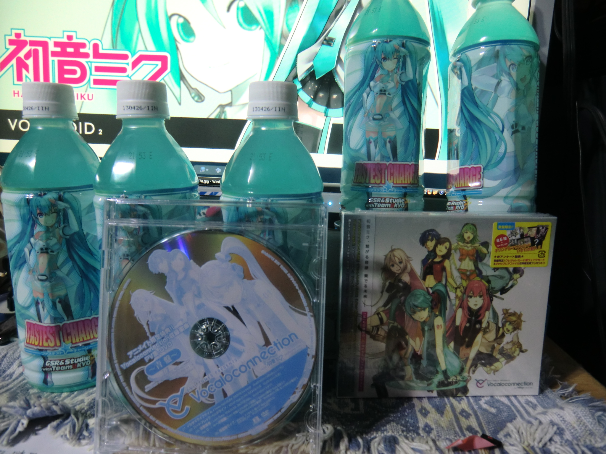 バイクのウインカーが点かなくなり、いつも行くショップは遠いので今回は近くのショップに乗りつけると、リレーの故障とのこと、型が古いため在庫がなく、2,3日かかるとのこと。仕方がないのでバイクを預けて地下鉄で久しぶりにMOMO近鉄へ。 そのフードコートで見たのは・・・ なんと子供を机の上に立たせて、アイスクリームを食べさせているバカ親!今まで見た中で最悪のマナー。絶対に碌な子に育たない。親が最悪だからこの子供が親になったら同じことをするんだろうなあ。 で、そのまま帰るつもりだったのですが昨日の例のCDを買うためおけいはんで四条河原町へ。案の定おけいはんのホームに着いたら電車が逃げて行くところでした。たまにしか利用しない駅っていつもこんなものです。 いつものa店で最初に見たのは・・・ミクさんが描かれたスポーツドリンク。5本買うとポスターが付いてくるとか。割高だし5本買うと重たいのですが思い切って担いで帰りました! このとおり勿論CDも見つけた瞬間カゴへ。 買うものを決めてきた時は滞在時間が非常に短いです。 で、このCD、見る角度によってミクさんの表情が変わる下敷き、裏紙を剥がすとなにかが描かれていそうなはがき(これは使う時に剥がすのか、剥がさないのか迷う!)3枚、そしてジャケと同じ画の大きな(けいおんオフィシャルカレンダーよりも大きい!)ポスターがついてきました。 それにしてもレン君はリンちゃんに跨ってるの? ちなみにスポーツドリンクのポスターはVocaloconnectionポスターのさらに倍の大きさです(@@) |