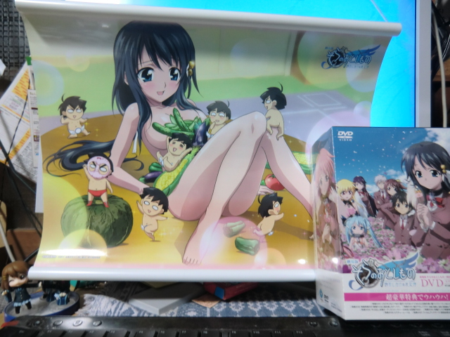 どの店で買おうか迷いましたが、最初にこの情報を得たA店に敬意を払いA店へ。 もしかして特典失敗だったかもしれない。 日和のちょっとエッチなミニタペストリはよいとして、わけのわからぬシールがA店の特典らしい。これは3枚の白いシールで、ニンフのアノ場所とアソコに貼るためのものらしい。ばかばかしい!ニンフいないのにどうやって使うんだ? で、話は戻ってこのDVD、何がすごいかというと、 イカロスと日和の添い寝ベッドシーツ付き! これヤヴァいんじゃないの? これ使うと恥ずかしくてアレができなくなる・・・(危)というかテンションあがって眠れないかも。とにかく非リアにとっては断然「買い」です! そして(けいおんにはBDにしかついてなかった)オーディオコメンタリー。 ま急がずゆっくり聞いてみよう。